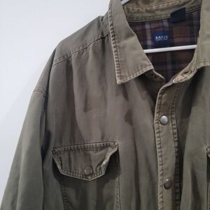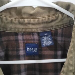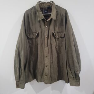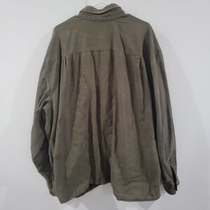 The Vintage Basic Editions Shacket Canvas Size 4X Green Blanket Lined Outdoor Barn is a unique and stylish addition to any man's wardrobe. Made from durable cotton canvas with a solid green color, this jacket features a snap closure, button accents, and a lined interior for added comfort. Perfect for outdoor activities like walking and hiking, this military-style jacket also has a retro vibe that evokes the 90s era. The brand's commitment to quality and the big & tall size make it a versatile and timeless piece for both casual and travel occasions.