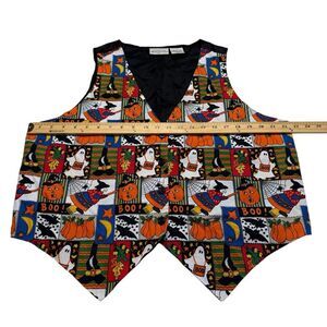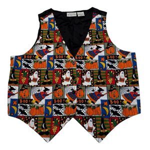 Vintage Basic Editions Plus Halloween Vest Ghosts Witch Bats Pumpkins Sz XL
