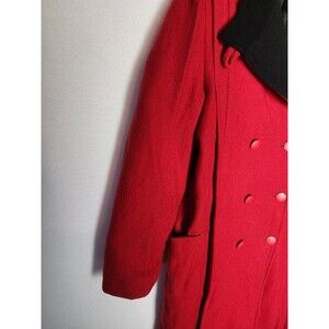 Vintage Basile Red Wool Coat Black Accents Long Womens Large