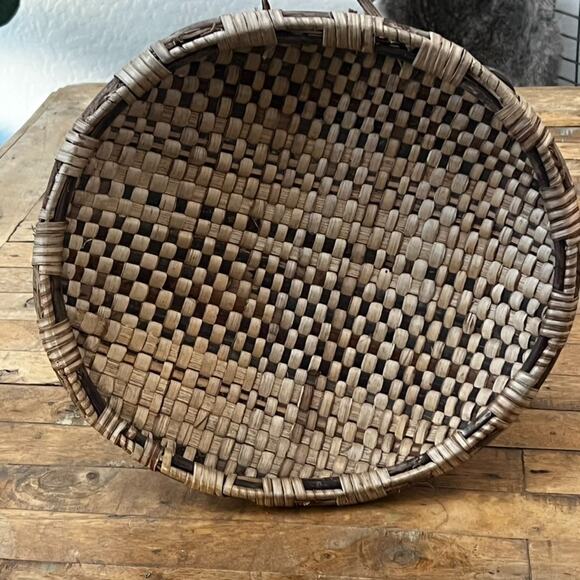 Vintage Basket Decor 13" Fruit & Vegetable Brown Rounded Boho Country