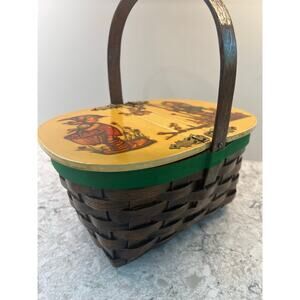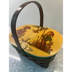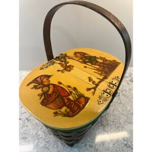 Vintage Basket J. Hummel 1968 Print on Cover Green Fabric Interior 11"x9"x7" JL