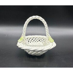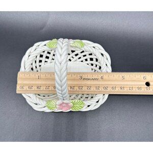 Vintage Basket Trinket Dish Cabo Spain SL Reticulated White Pink Flowers Repair