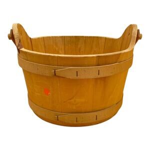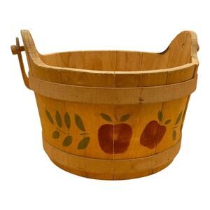 Bring timeless charm and Americana style to your home with this vintage Basketville wooden bushel basket, handmade in Putney, Vermont. This beautifully crafted piece features a classic hand-painted red apple and leaf design, perfect for rustic farmhouse decor, autumn displays, or vintage kitchen organization.