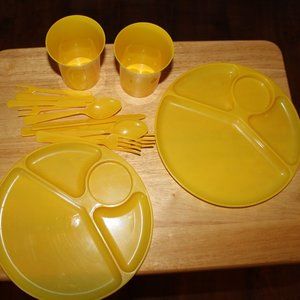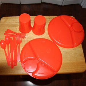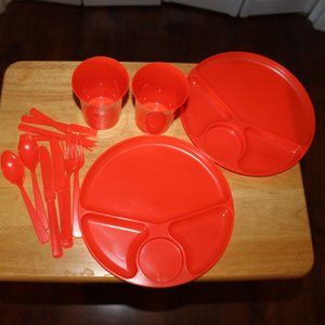 Vintage Basketville Plasticware -- 28 Pieces Red and Yellow