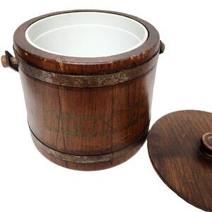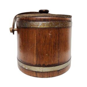 Vintage Basketville Putney Vermont Wood Barrel Cookie Bucket w/Handle & Lid is a charming authentic piece of Americana decor. Made in Vermont, this original bucket features a solid wood classic design that is sure to add warmth and character to any space. this item includes sturdy construction wood bucket and functional handle, lid and original white plastic insert. This is a unique and timeless collectible item. Approximate Measurements: 9” x 8”