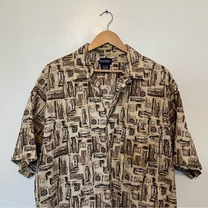 Vintage Bass Fisherman Novelty All Over Print Outdoorsy Button Down Shirt