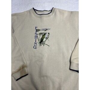 Vintage Bass Fishing Embroidered Biege Pullover Sweatshirt Men’s Size XL