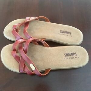 Vintage Bass Women's Burgundy/Red Leather Cross-Strap Sandals 8M