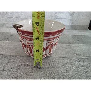 Vintage Bassano Italy Pottery Mixing Bowl Red & White Floral Design
