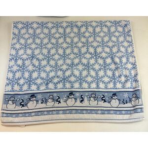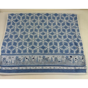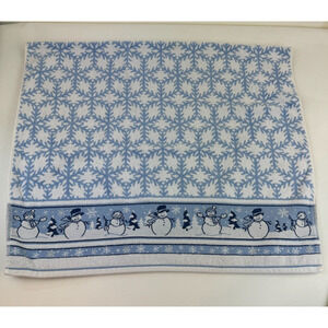 Vintage Bath Towel Cecil Sayday Set of 2 Snowman Snowflakes Blue white