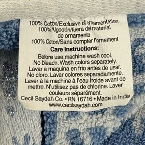 Lot of 2 Vintage Cecil Sayday Bath Towels Blue White and Silver. Adorable snowmen and snowflakes. Perfect for a winter bathroom or the holiday season.