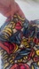 Colourful with slight fade. Great structure with boning and light weight. Material cotton