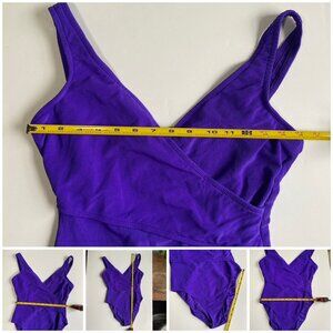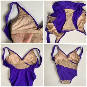 Vintage Bathing Suit Shell Beach One Piece Purple Crossover Front Ribbed EST. Lg
