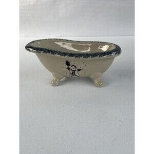 Vintage Bathtub Mini Tub Candleholder with Snowman Decor Blue Trim
