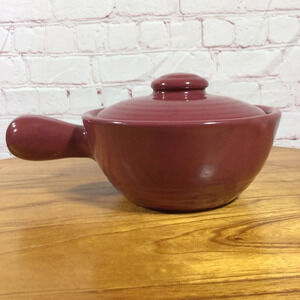 Vintage Bauer Ringware Cranberry Ceramic Soup Chowder Chili Handled Crock Bowl