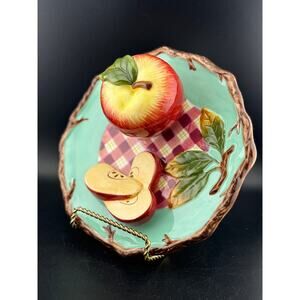 Kitschy cool decorative plate with a 3D apple and apple slices. 8.25" diameter, 3" depth.