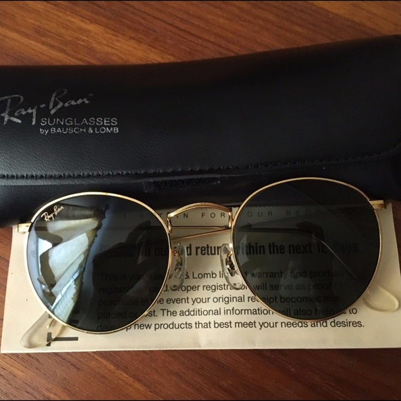 Vintage Bausch & Lomb Aviator sunglasses from the 90s. Gold frames with clear accents. John Lennon inspired! Found these at a vintage shop in Tokyo, wore once. Super clean and in mint condition. Comes with original case and B&L warranty paper. Willing to trade for some Moscots.