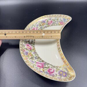Vintage Bavaria Germany Bone Dish Plate Crescent Porcelain Floral Pattern Plate