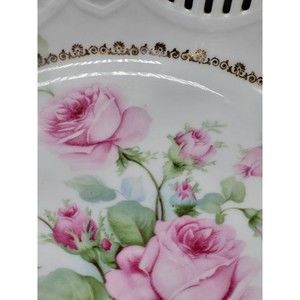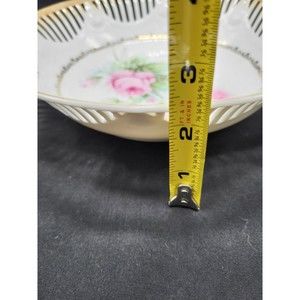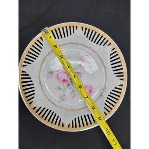 Beautiful Bavarian hand painted bowl with lovely antique rose pattern. Has a delicate reticulated edge with lustreware finish. There is crazing in the glaze on back, but none on the inside. There is a gold circle pattern around the center of bowl. C/S with Bavria backstamp-Carl Schumann 1900's