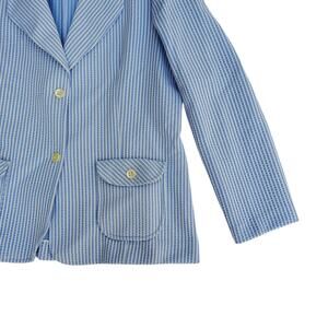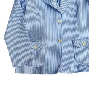 Vintage Bay Harbour Seersucker Blazer Jacket Blue White Stripe Unlined Size 16