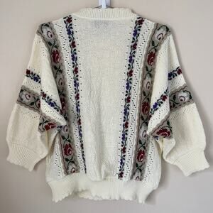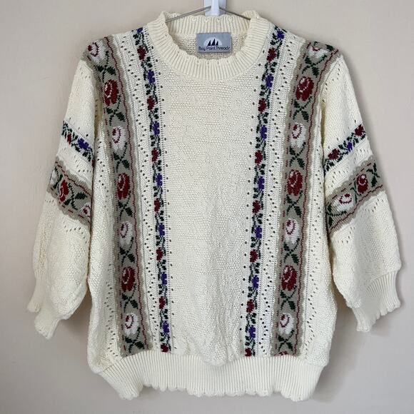 Vintage Bay Point Threads Floral Cream 3/4 Sleeve Sweater Size S