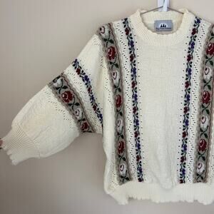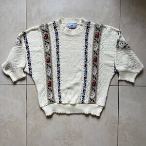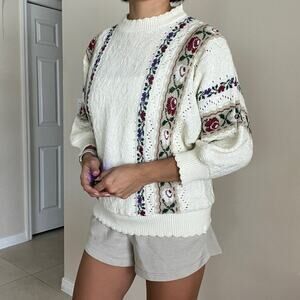 Vintage Bay Point Threads Floral Cream 3/4 Sleeve Sweater. Size S (size tag removed, please see measurements below for reference)