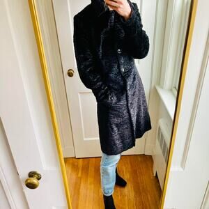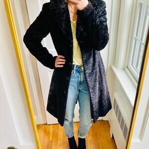 Unbelievable vintage 90s faux fur BeBe coat. Dramatic waist, cool texture, perfect condition.