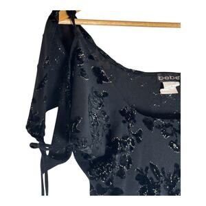 Vintage BeBe Women's Black Silver Floral off the shoulder Crop Top Large Boho Goth