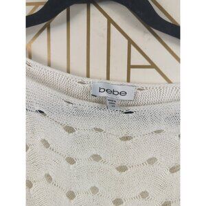Vintage BeBe Women's Y2k Open Back Top Knit Rayon White Wide Neck Size XS