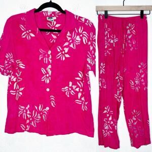 Vintage Beach Collection Hawaiian Matching Set Outfit Rayon Floral Artsy
