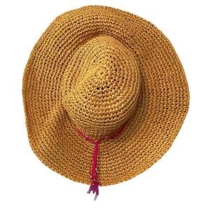 Vintage Floppy Hat Womens Raffia Straw Pink Beaded Beach Resort Vacation Y2k
