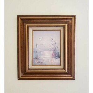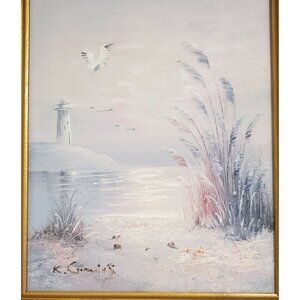 Vintage Beach Ocean Lighthouse Hand Painted Original Oil Painting K Cummings.