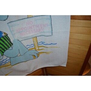 Vintage beach towel in very good condition. Created by or for Cannon, USA. Check out this print. Light terrycloth. Used, minimal sun fading. Such a find! Pink lettering says no appointment needed. Love love this.
