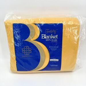 Vintage Beacon Fantasy 72" x 90" Acrylic Needle Woven Blanket NEW Mustard Yellow