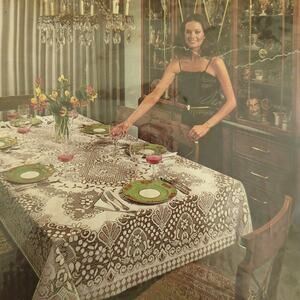 A beautifully balanced concept in lace. The power and boldness of this two-tone lace tablecloth will add a new dimension to any modern setting. 100% Dupont Dacron Polyester. Permanent Press - Soil Release. It is machine washable.