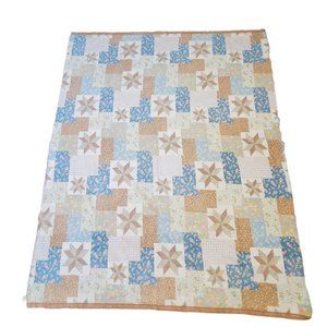 Vintage Beacon Patchwork Floral 8 Point Star Faux Quilt Thermal Blanket 87x71.