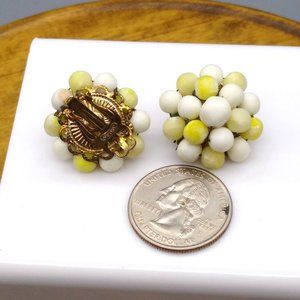 Vintage Bead Cluster Earrings, Classic White and Yellow Clip Ons from Mid Century Japan