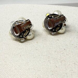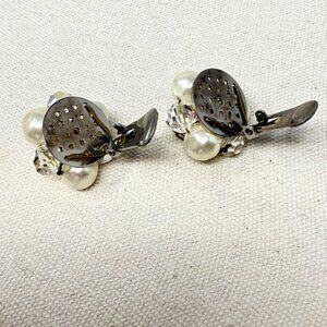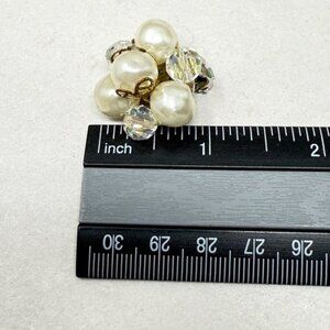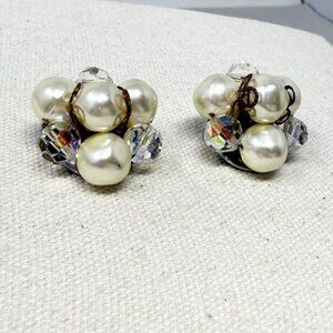 Vintage Bead Cluster Earrings Faux Pearls Crystals Clip-On Retro Classic
