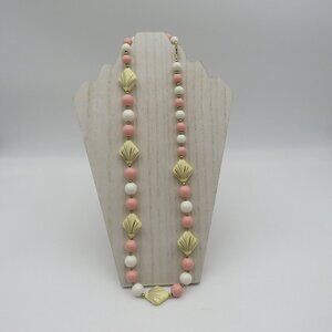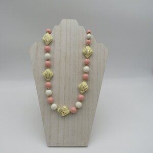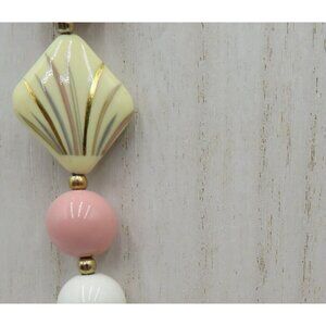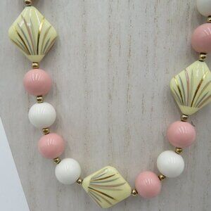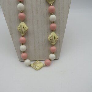 Vintage Bead Necklace Pink White Gold Tone Spacers Square Beads Metallic Paint Preowned