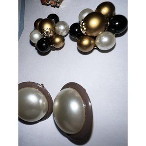 Vintage Bead Pearl Cluster Clip On Earrings 1" Estate Costume Jewelry bundle.