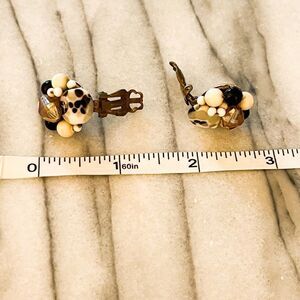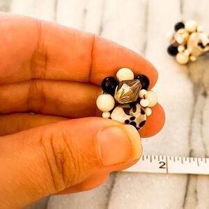 Vintage Bead Cluster Earrings Black White Cream Gray AB Retro Estate Jewelry Mid