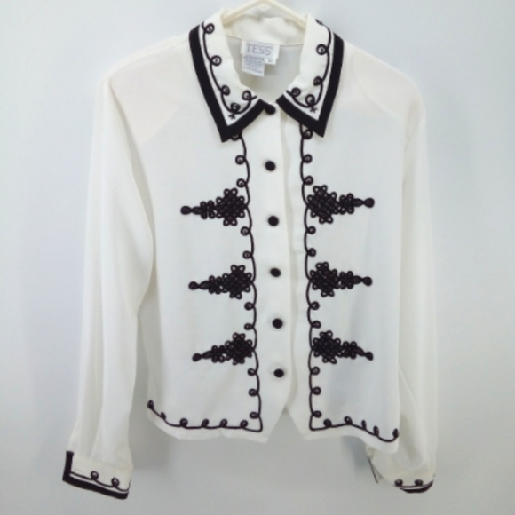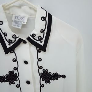 Vintage Beaded Black White Formal Blouse Tess 14