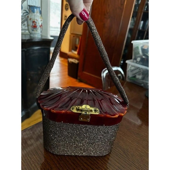 Vintage Beaded Box Bag with Bakelite Beautiful top