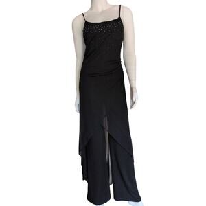 Vintage Beaded Chiffon Jumpsuit XS Sheer Overlay Ruched Fairy Grunge Whimsigoth