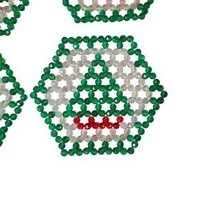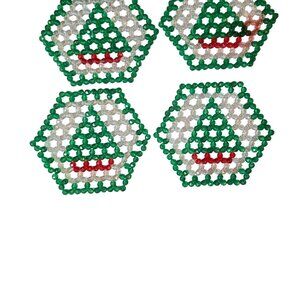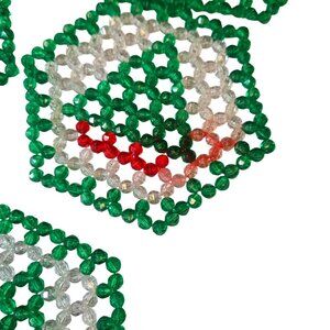 Vintage Beaded Christmas Tree Coasters Beaded Set Of 6 Green Red White
