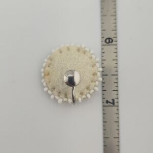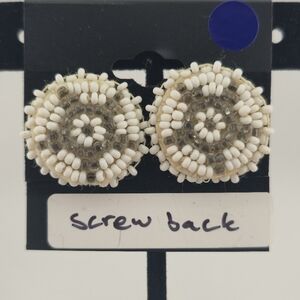 Vintage Beaded Circle Earrings 1” White & Gray Seed Beads Screw Back