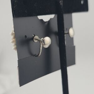 #vintageearrings #screwbackearrings #beadwork #seedbeads #handmadejewelry #retrostyle #nonpiercedears #midcenturyfashion #bohojewelry #statementearrings
