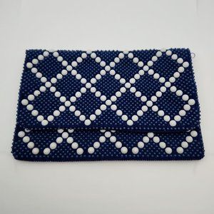 Vintage Beaded Clutch Bag, Designed by Mr. Jonas, Blue & White, Hong Kong