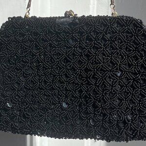 Black and gold. Some fraying threads. Good vintage condition. The clasp is a little tight/tough.