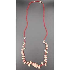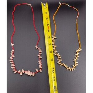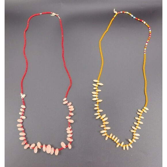 Vintage Beaded Cowrie Shell Necklace Handmade Lot of 2 Red Orange White